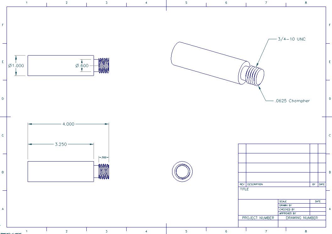 NOTE: Thread Specification: 3/4 -10, UNC, Class 2