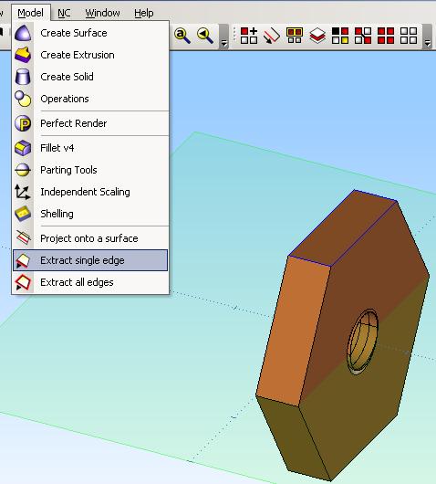 7. In OneCNC select Model/Extract Single Edge and select the surface