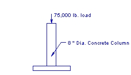 EXAMPLE PROBLEM: An 8 inch diameter concrete column is under a 75,000 pound static load. How much stress is the column subjected to?
