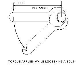 EXAMPLES OF APPLIED TORQUE EXAMPLE PROBLEM: If 50 lb. force is applied to the handle of a 12 inch open-end wrench, how much stress is created in a 1/2 inch bolt?