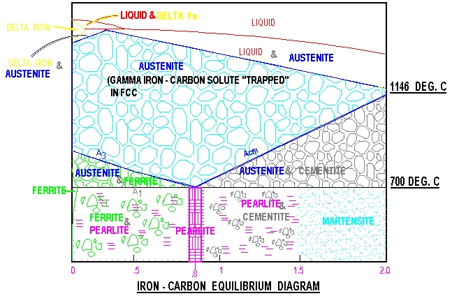 The diagram shown below shows the regions of the iron - carbon equilibrium where these compounds occur.
