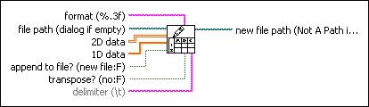 append to file? is TRUE, the VI appends data to an existing file. If append to