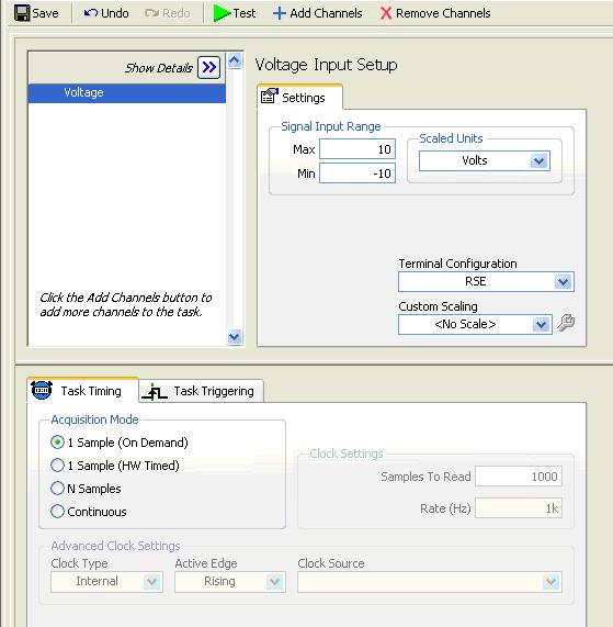 terminal configuration, select RSE (Reference Single End).