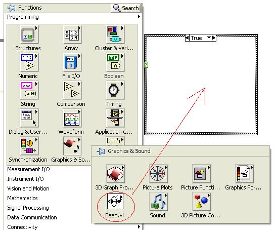 • Add an audible sound indicator inside the CASE STRUCTURE as shown below.