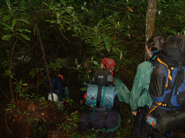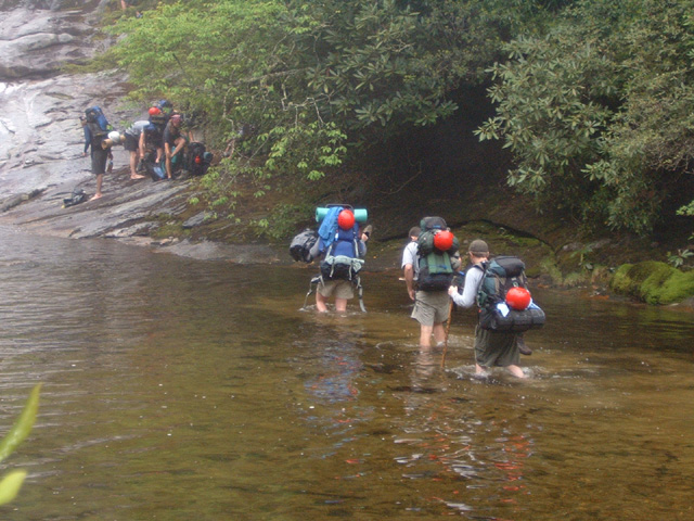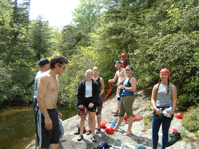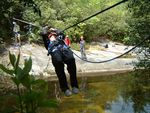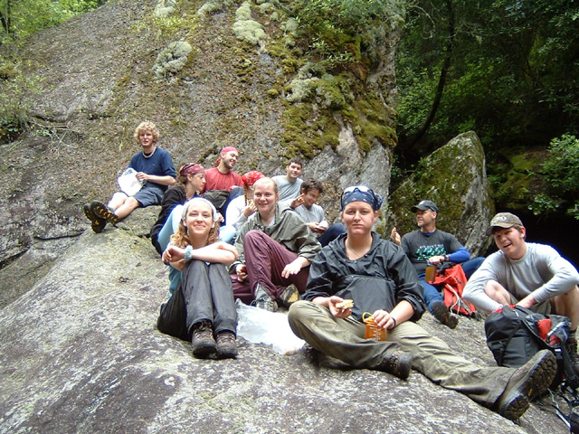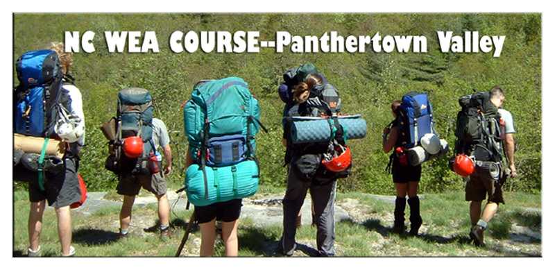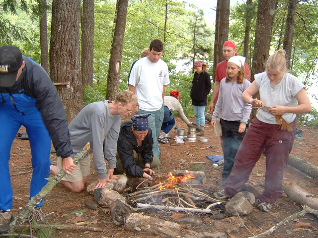 Photographs of skills used on the course including backpacking, navigation, canoeing, evacuations, a tyroleon traverse and fine dining.